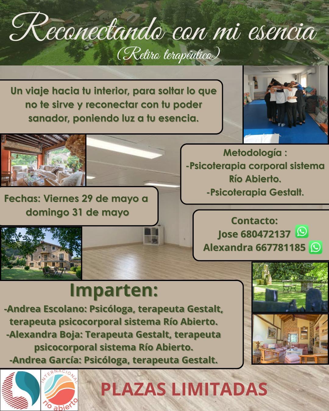 Metodología Río Abierto: Conjunto de técnicas psicocorporales y transpersonales ,integrando movimiento expresivo, el masaje, respiración consciente y la expresión artística para conseguir la armonización cuerpo-mente-emoción y favorecer la expresión autentica del ser.